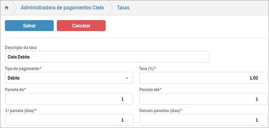 Desta forma você abrirá a tela de taxas, faça as alterações necessárias e pressione o botão Salvar.