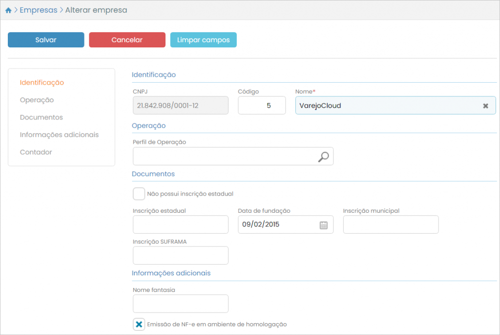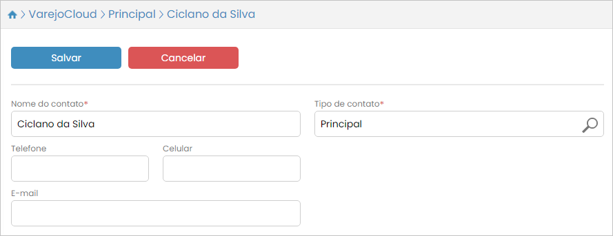 Será exibida a tela com as informações do cadastro. Faça as modificações desejadas e, por fim, clique em Salvar para efetivá-las.
