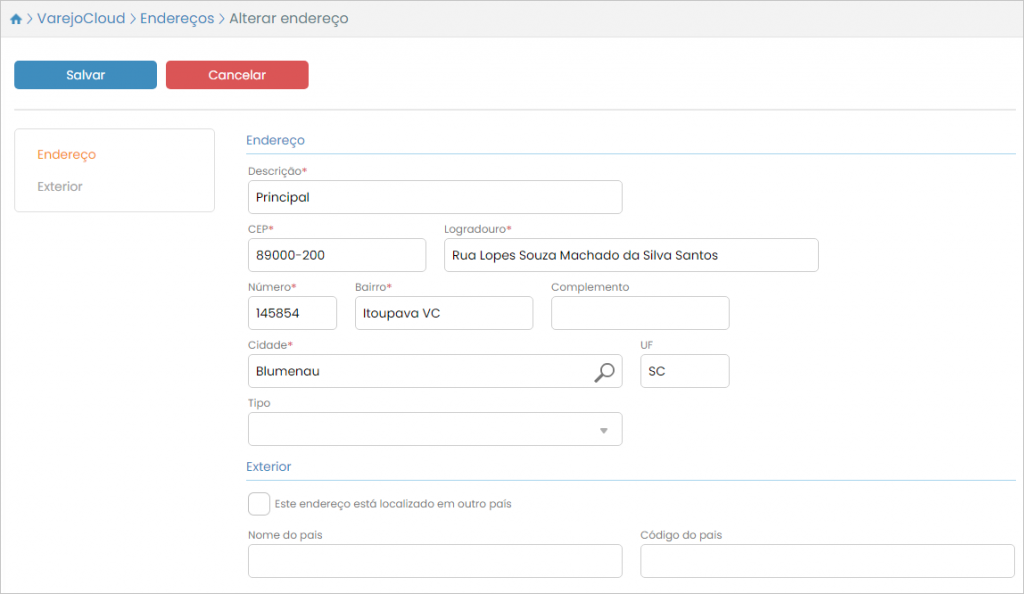 Assim será aberta a tela de alteração de endereço: