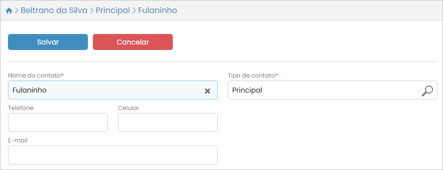 Será aberta a tela de alteração de contato:
