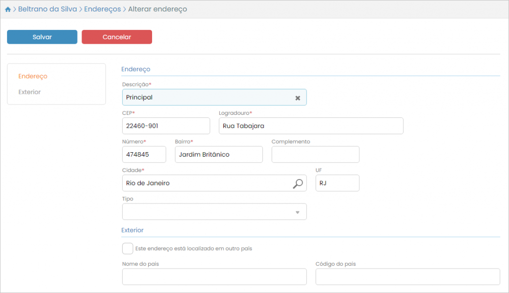 Assim será aberta a tela de alteração de endereço: