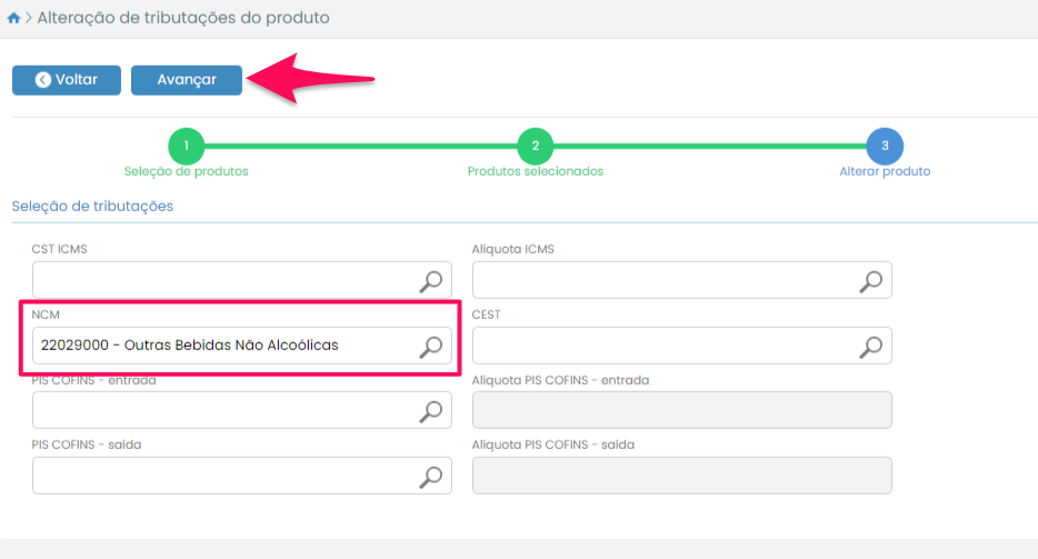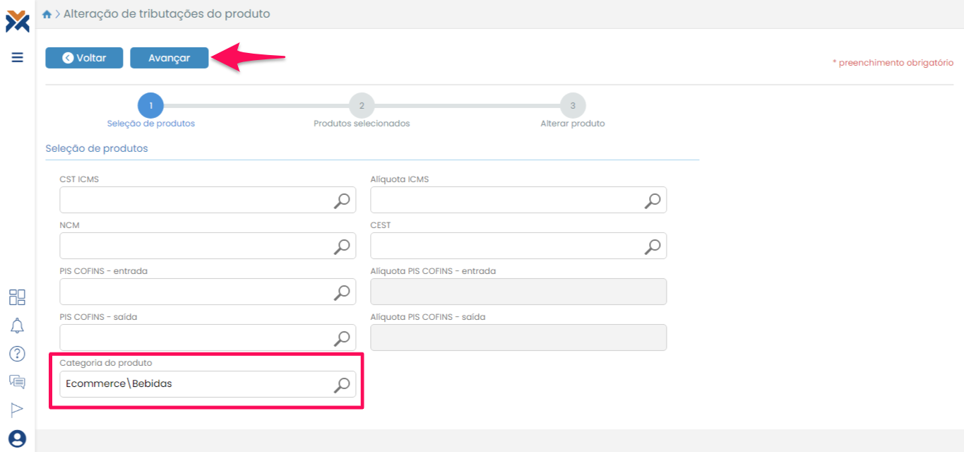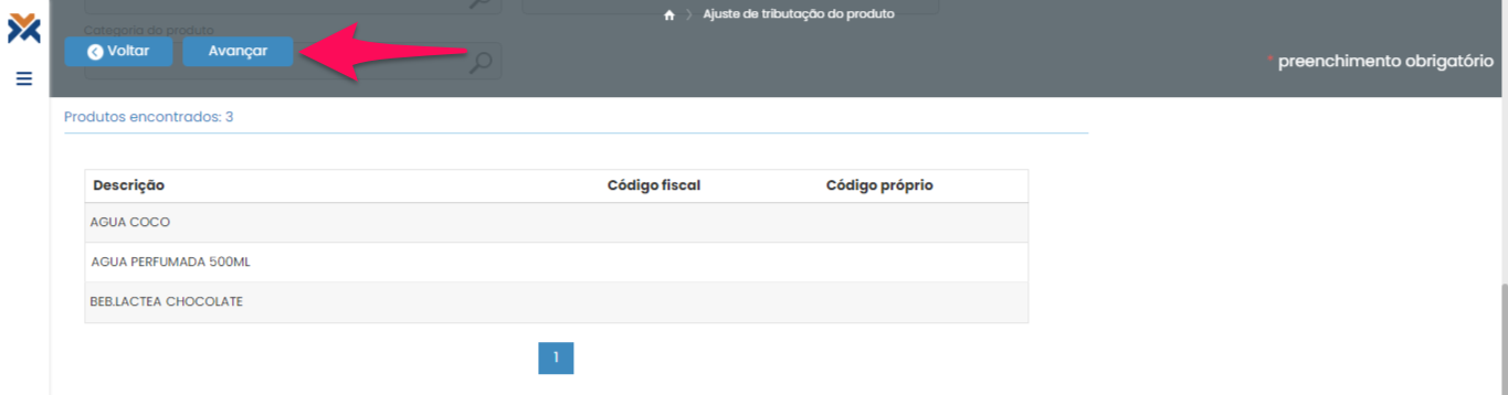 Após selecionar o grupo de produtos desejado, clique no botão Avançar.