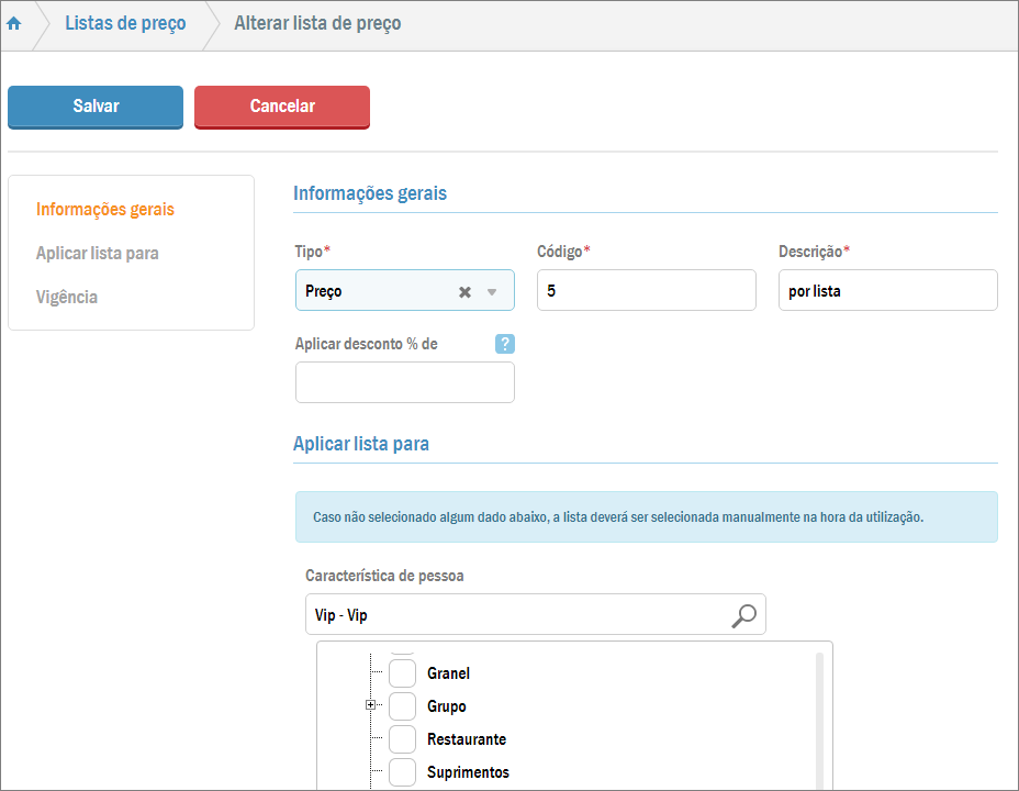 Ao finalizar as alterações, clique em Salvar para efetivá-las e na sequência será exibida uma mensagem informando que a alteração foi realizada.