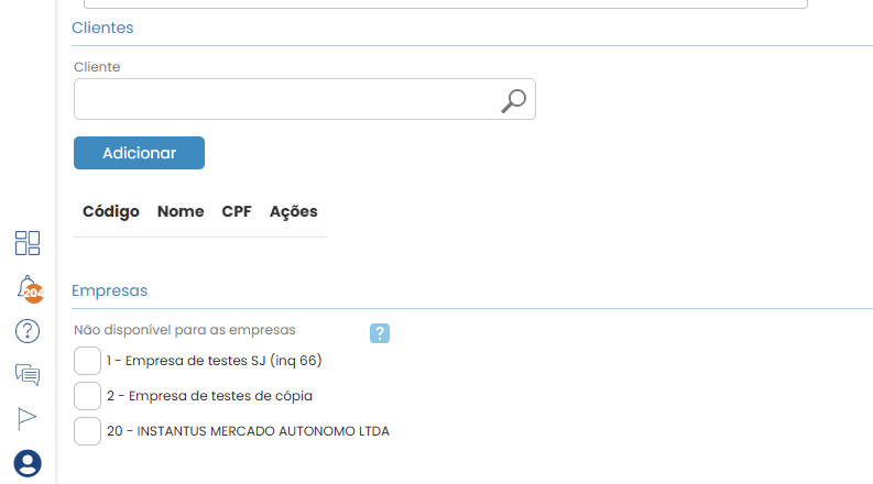Campo Empresas identifica as empresas que NÃO utilizarão a condição de venda especificada.