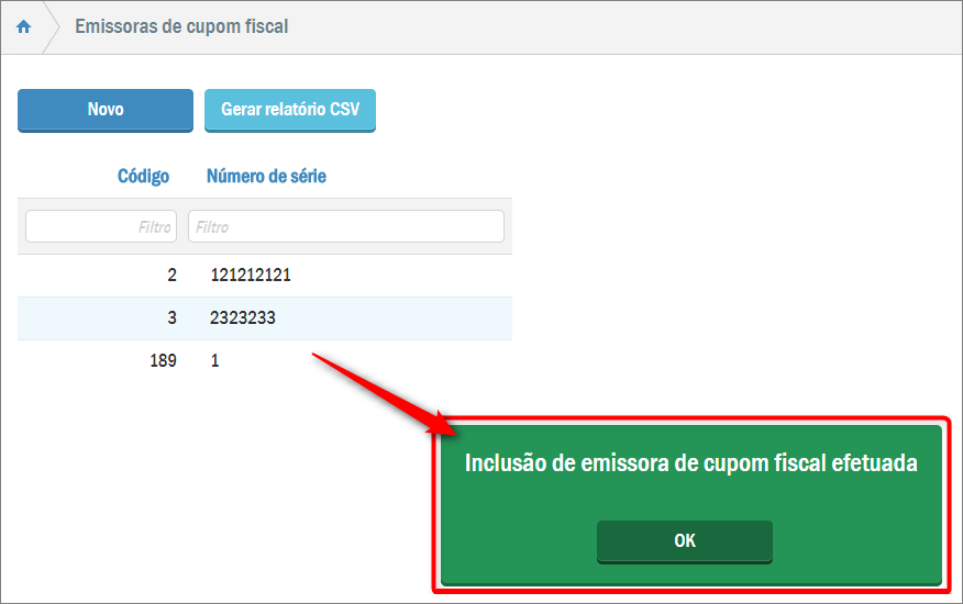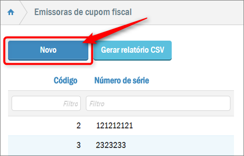 Para cadastrar um novo ECF, clique em Novo: