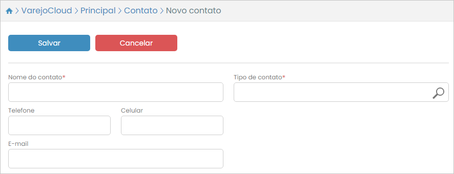 Na tela de cadastro de novo contato as informações a serem preenchidas são as mesmas do cadastro principal.