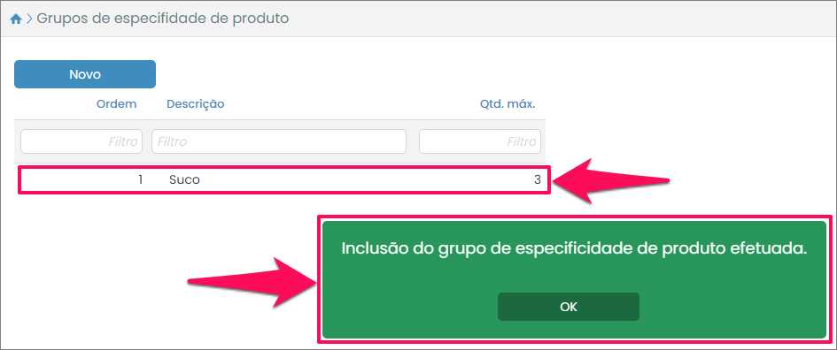 Se você já tiver cadastrado um grupo como “1”, ao cadastrar outro grupo como “1”, o anterior vai virar “2”, se houver um “2” ele se torna o “3”, e assim sucessivamente.
