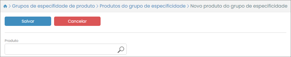 Será aberta uma tela com um único campo. Basta selecionar o produto desejado neste campo e pressionar o botão Salvar.