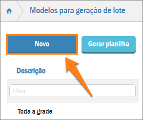 Na sequência, será exibido os modelos já cadastrados no sistema. Para cadastrar um novo modelo para geração de lote, clique no botão Novo, veja na imagem abaixo: