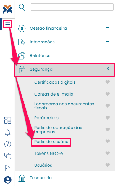 Para configurar um perfil, acesse: Menu > Segurança > Perfis de usuário: