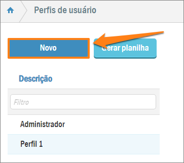 Ao acessar essa opção, será exibida a tela para registro dos perfis criados. Para criar um novo tipo de perfil, clique no botão Novo: