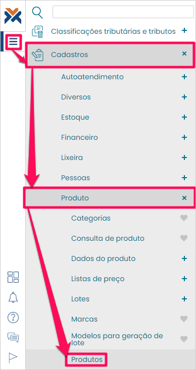 Para possibilitar o uso dos produtos complementares acesse: Menu > Cadastros > Produto > Produtos.