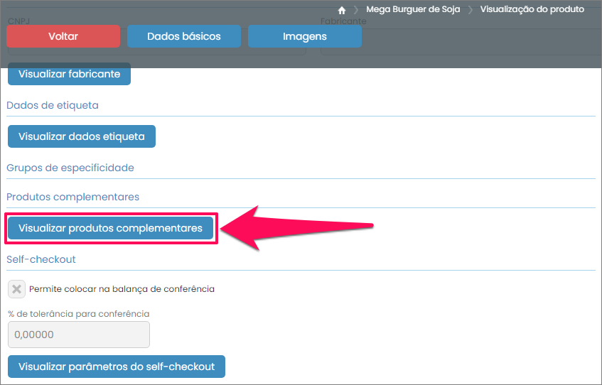 Depois role a tela para baixo até encontrar o botão Visualizar produtos complementares.