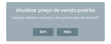 Pronto! Agora, ao alterar preço de um produto vinculado a um grupo de similaridades, por exemplo, você será questionado se a alteração deverá ser realizada em todos os produtos do grupo.