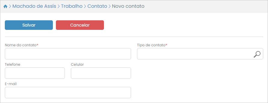 Na tela de cadastro de novo contato as informações a serem preenchidas são as mesmas do cadastro inicial.