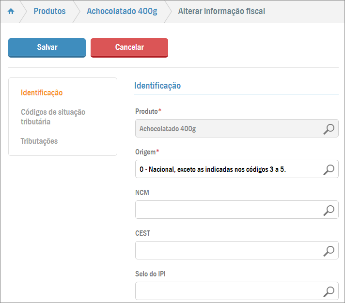 O campo CEST só deve ser preenchido caso o produto for de substituição tributária. Além disso, tela de informações fiscais conta com diversos campos e deve ser preenchida conforme orientação da contabilidade. Depois, clique no botão Salvar para voltar à visualização do produto.