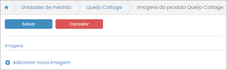 Para adicionar uma imagem para o produto basta clicar no botão Imagens, na parte superior da tela: