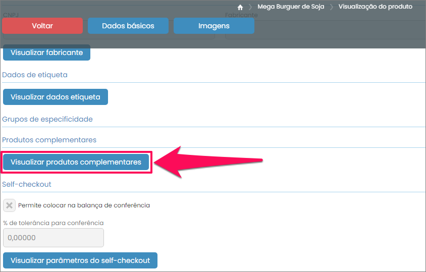 Para quem usa o Autoatendimento, vale destacar também que é possível cadastrar produtos complementares. Para isso basta pressionar o respectivo botão, conforme a imagem abaixo: