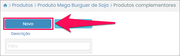 Na sequência pressione o botão Novo e cadastre o produto complementar. Caso desejado incluir outros itens de complemento basta pressionar o botão Novo mais uma vez e repetir o processo.