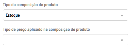 Mantenha este campo vazio caso não estiver cadastrando um produto de composição de estoque ou de venda. Caso contrário, selecione a opção “Estoque” ou “Venda”.