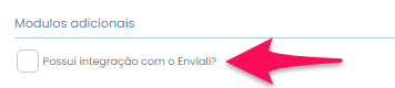 Caso você possua o módulo adicional Enviali, desça a barra de rolagem até a divisão de Módulos adicionais e marque a caixa de seleção da opção Possui integração com o Enviali?.