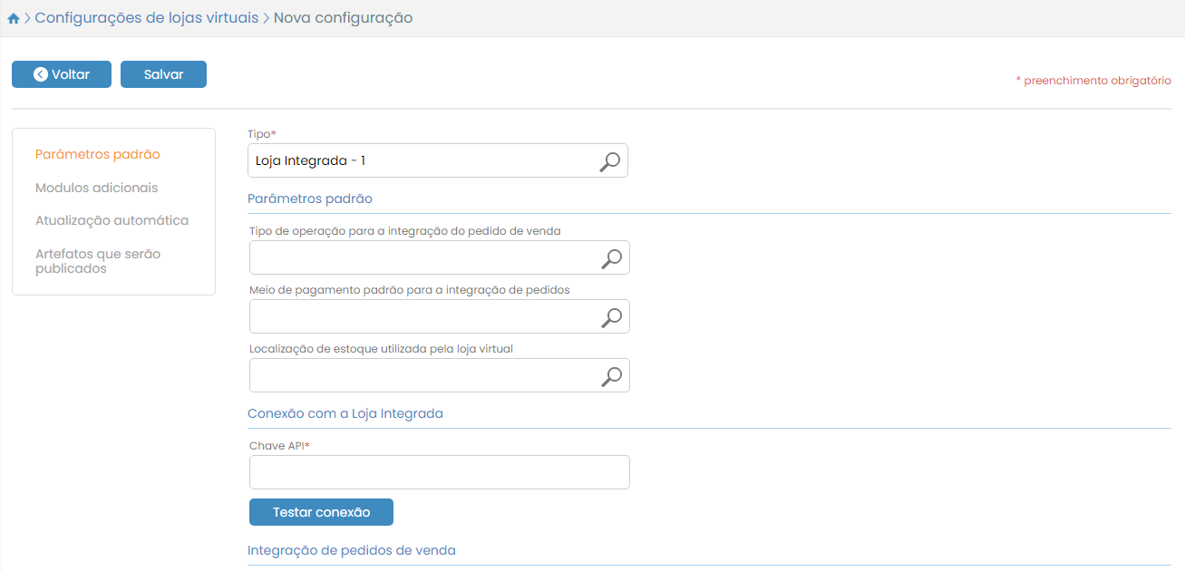 Tipo: selecione neste campo a loja virtual desta configuração;