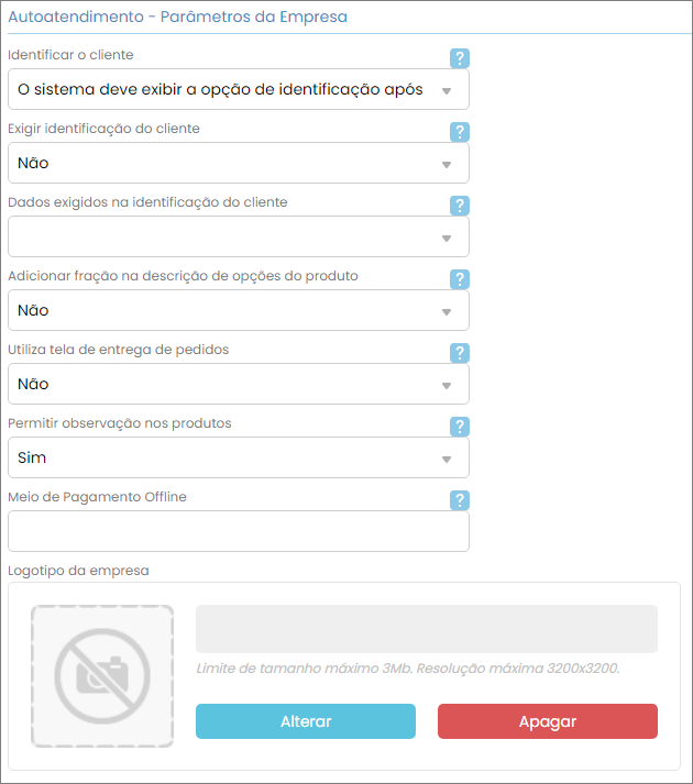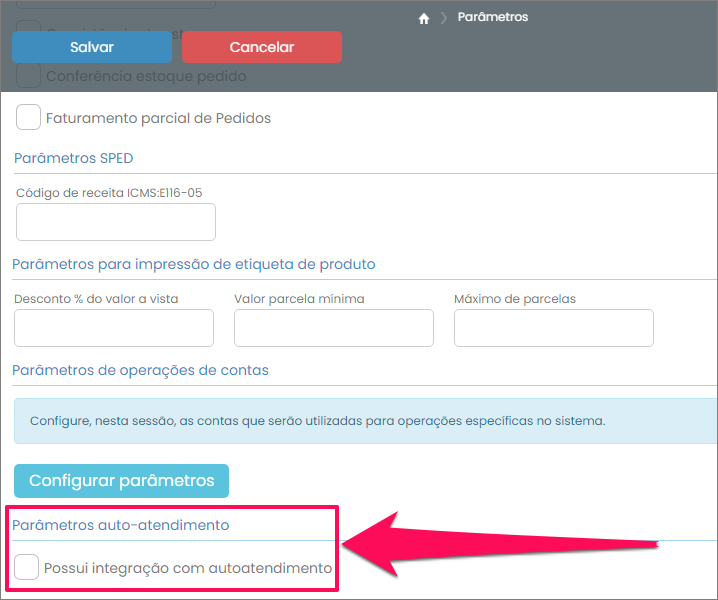 Selecionando esta opção serão habilitados diversos parâmetros do autoatendimento.
