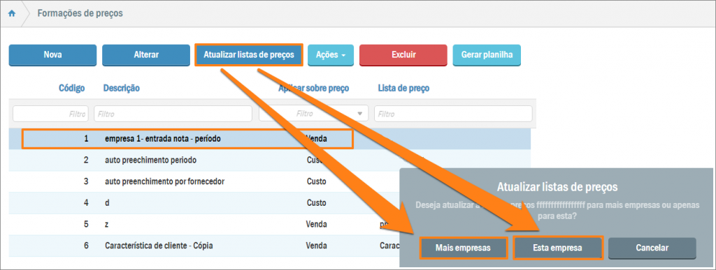 Você ainda pode atualizar uma lista de preços. Para isso, utilize o caminho: Gestão de preços > Formação de preços: