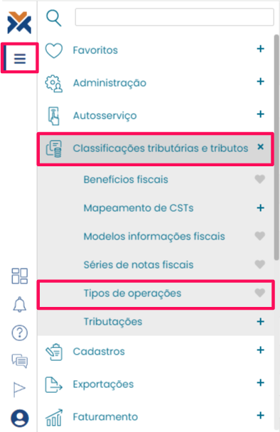 Antes de emitir a nota fiscal complementar, é necessário cadastrar o tipo de operação necessária para tal.