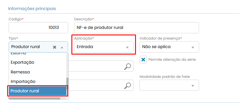 Para realizar a entrada de produtos adquiridos de um produtor rural, é necessário cadastrar um Tipo de Operação.