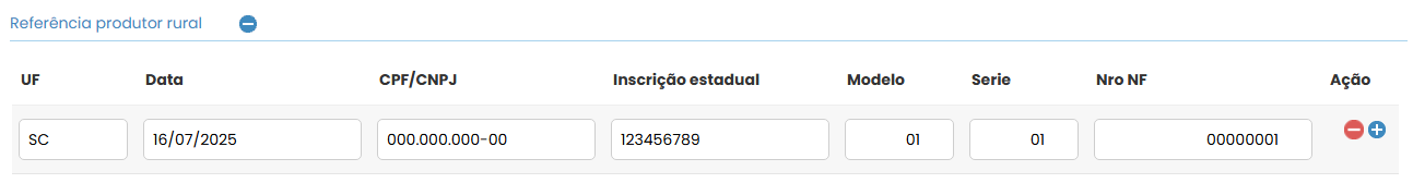 Após informar os produtos, será permitido identificar os dados de referência do produtor rural, se necessário.