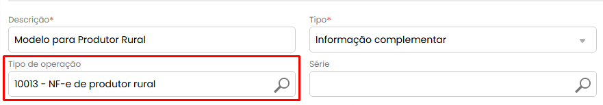 Na digitação de nota fiscal, ao selecionar este tipo de operação, o modelo criado será automaticamente utilizado.