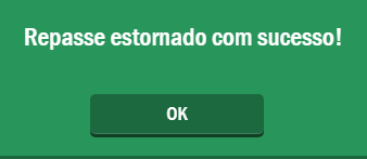 Clicando neste botão, o repasse em questão será estornado, simples assim! O sistema ainda exibe uma mensagem confirmando o estorno: