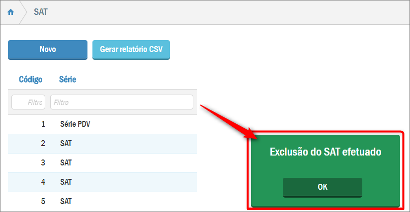 Após fazer isso, o sistema retorna mensagem em relação à conclusão da exclusão, e o registro deixa de constar na listagem.