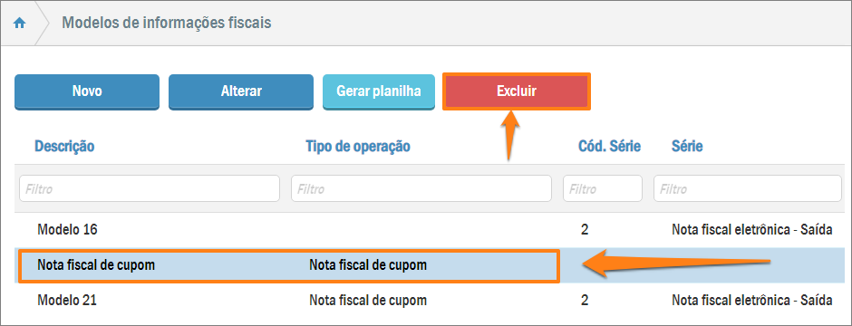Como excluir modelos de informações fiscais?