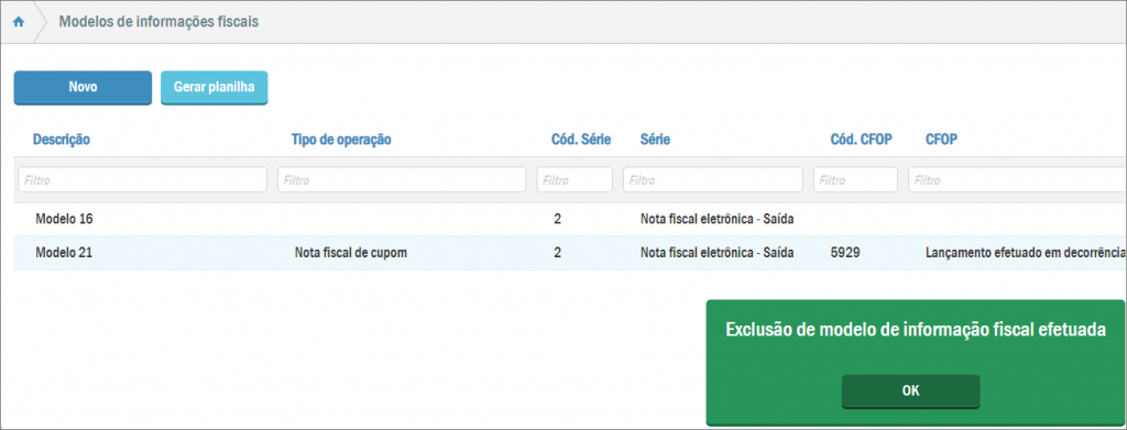 3. Como excluir modelos de informações fiscais?