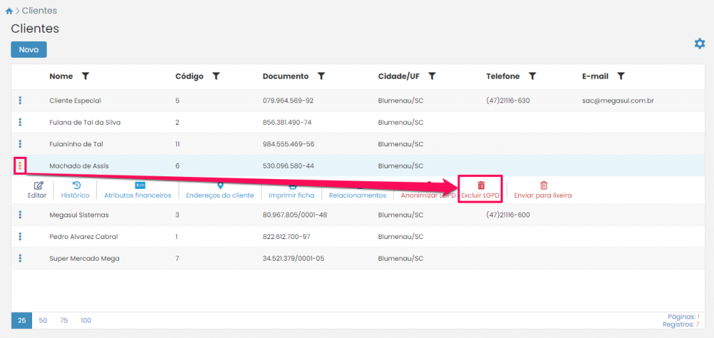 Agora, se você quiser deletar as informações do cliente permanentemente: