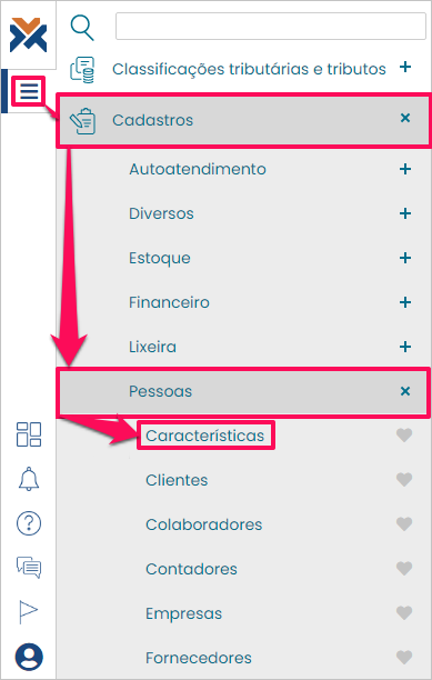 Para isso você deve acessar: Menu > Cadastros > Pessoas > Características.