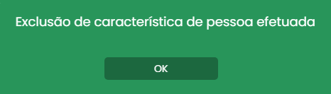 Basta clicar em Confirmar para que a exclusão seja efetuada. Porém, vale destacar que a operação só poderá ser realizada caso esta característica não esteja vinculada a nenhum registro de pessoa no sistema. Caso contrário será exibida a seguinte mensagem: