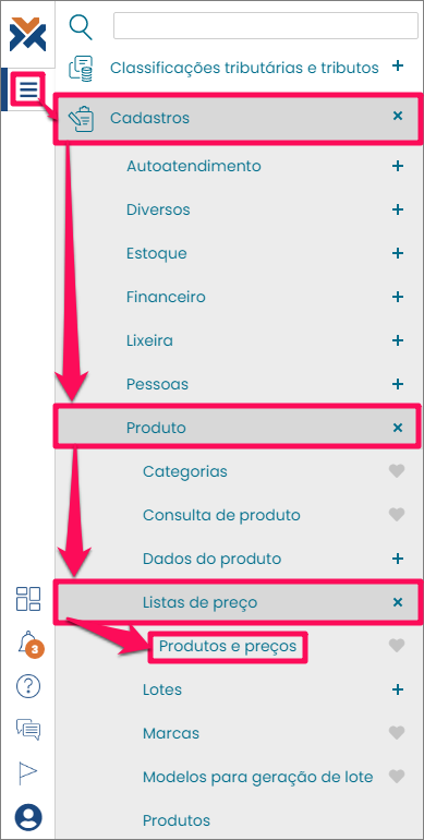 Inicialmente acesse o menu do VarejoCloud > Cadastros > Produto > Listas de preço: