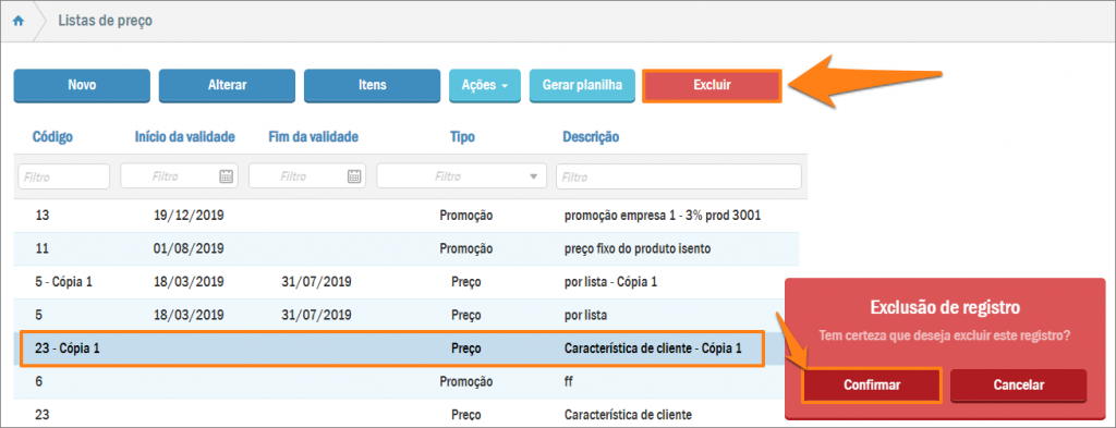 3. Como Excluir uma Lista de Preço ou Promoção?