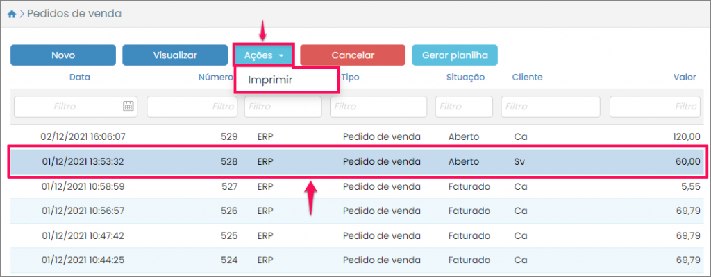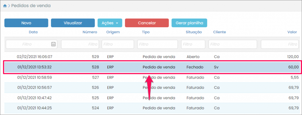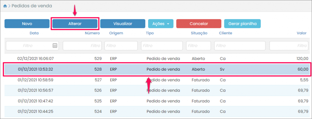 No exato momento que este pedido for carregado no Caixa não será possível alterá-lo nem faturá-lo no VarejoCloud. Você poderá checar isso acessando: Menu > Faturamento > Pedidos de venda. Repare que selecionando o pedido em questão o botão Alterar não fica disponível e, em Ações, só é possível imprimi-lo.