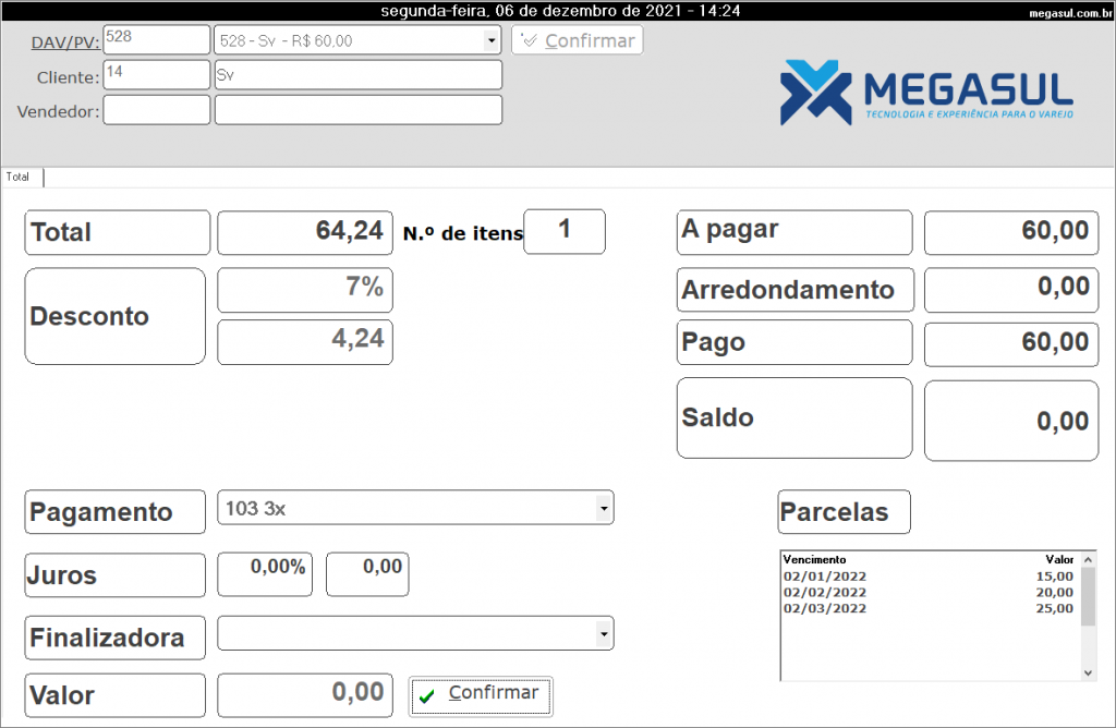 Agora, basta realizar a venda no Caixa, da mesma maneira que acontece qualquer outra venda. Caso haja alguma dúvida neste procedimento clique aqui.