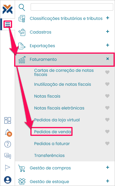 Para iniciar, acesse: Menu > Faturamento > Pedidos de venda: