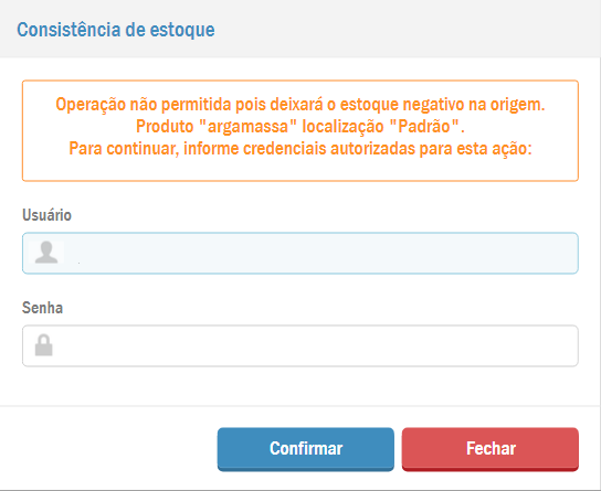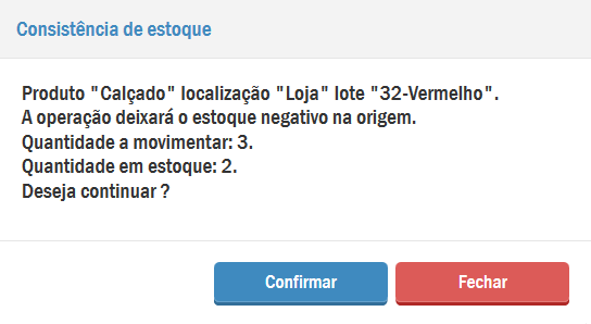 Caso o operador tenha autorização para movimentar o estoque negativo, o sistema apenas questionará se deseja concluir a operação.