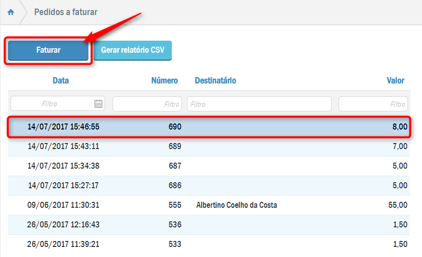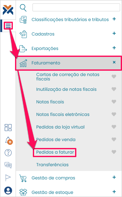 Para iniciar, acesse: Menu > Faturamento > Pedidos a faturar: