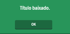 Terminando o preenchimento do(s) meio(s) de pagamento(s), pressione o botão Confirmar. Pronto, o título será baixado e o sistema emitirá uma mensagem avisando sobre o sucesso da operação: