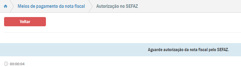 Depois de adicionar o meio de pagamento da nota fiscal e pressionar o botão Confirmar basta aguardar a autorização da Sefaz.