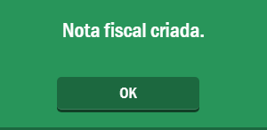 Clique mais uma vez no botão Salvar e depois em Escriturar nota fiscal. A nota será escriturada e o sistema fará automaticamente as movimentações de estoque, financeiro, acerto de preços de custo e etc. O sistema avisará que a nota foi criada: