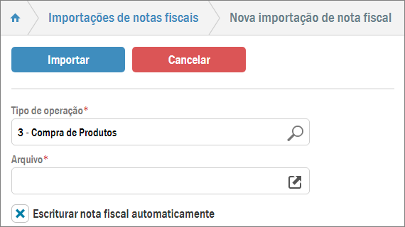 Clique no botão Importar pelo XML para ser direcionado à tela onde a importação será feita:
